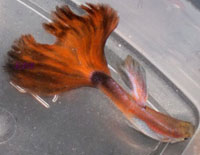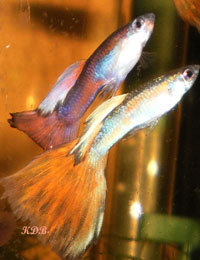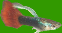 | Guppy(Poecilia reticulata) Ursprüngliche Herkunft: Venezuela,Barbados,Trinidad,regional bis Nordbrasilien und Guayana Größe: Männchen bis 3,5 cm, Weibchen bis 6 cm Temperatur: 20° – 26° C |